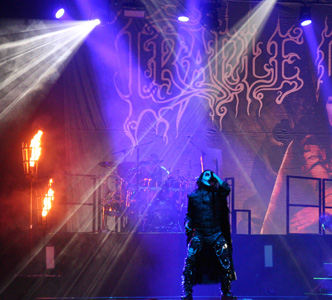 Look up the word ‘spectacle’ in a dictionary and don’t be surprised if you encounter a picture of Cradle Of Filth at the London Palladium. Pulling out all the stops to celebrate the upcoming ‘re-mistressed’ anniversary release of their third album, 1998’s ‘Cruelty And The Beast’, the masters of mayhem took over one of the bastions of polite society and delivered a show of breath-taking audacity, in equal parts noise, Filth and fury, as Warfare once declared.